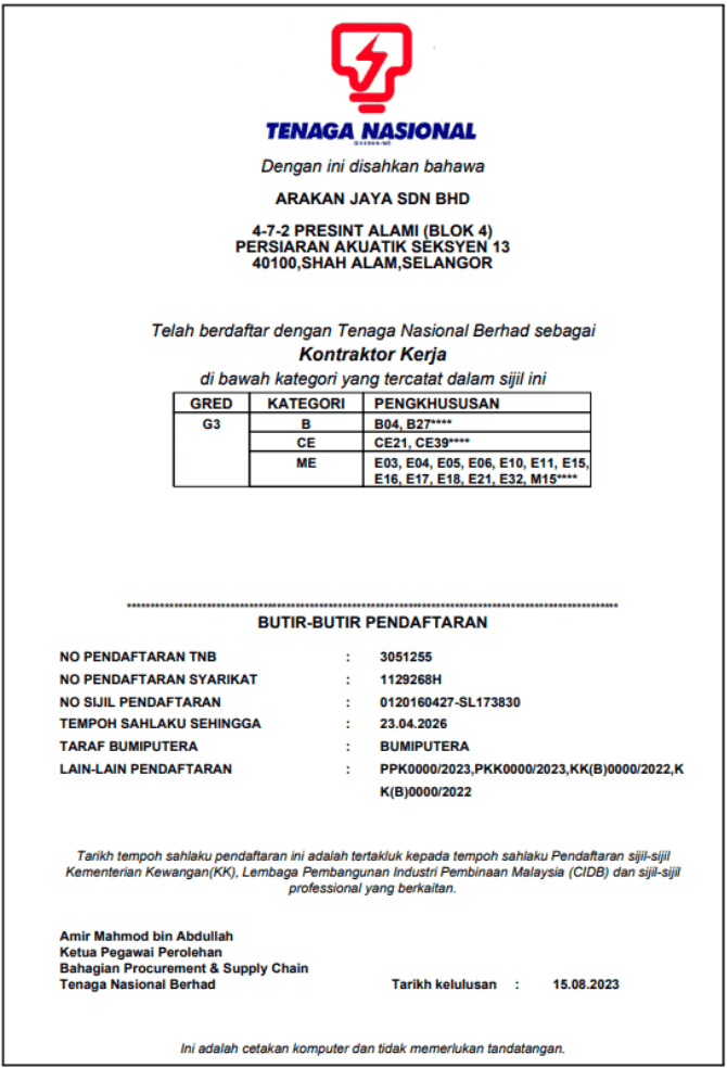 Company Certificate